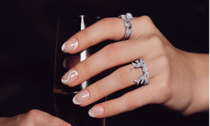 Model ini tidak hanya memancarkan kilau yang intens, tetapi juga memberi sentuhan romantis dan artistik pada jari pemakainya. Cocok untuk Anda yang ingin tampilan flamboyan namun tetap elegan sebuah pilihan tepat untuk momen spesial seperti anniversary atau pesta malam.